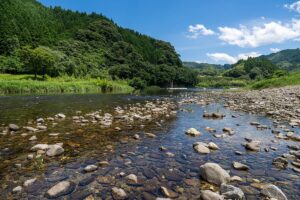 本匠は佐伯市の西部に位置し、山々と清流に囲まれた里山地域です。豊後水道に面した漁業の町・佐伯市中心部から少し内陸へ足を運ぶと、自然の中に広がる美しい景観が広がります。地域を流れる番匠川は、水質の良さで知られ、鮎釣りや水遊びが楽しめるスポットとしても人気です。