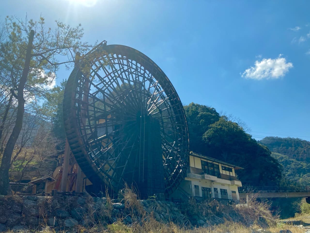 大分県佐伯市本匠にある「本匠の大水車」は、日本最大級の木造大水車です。直径18.18m、高さ6階建てビルと同じ高さで、迫力満点。佐伯を代表する観光スポットとして多くの人々に親しまれています。